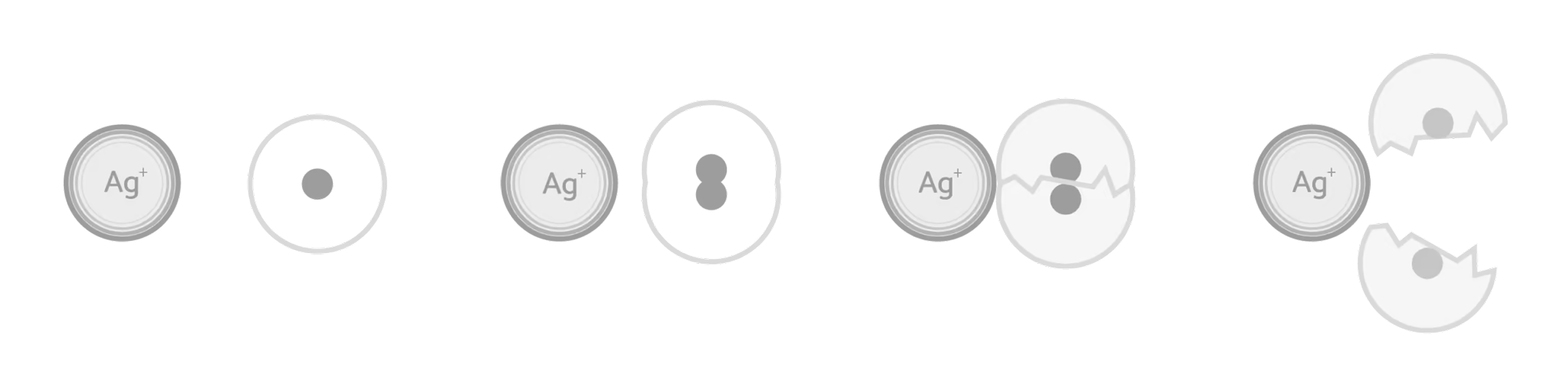 Silver ions interrupt bacteria as they try to duplicate. So, instead of two, you get none.